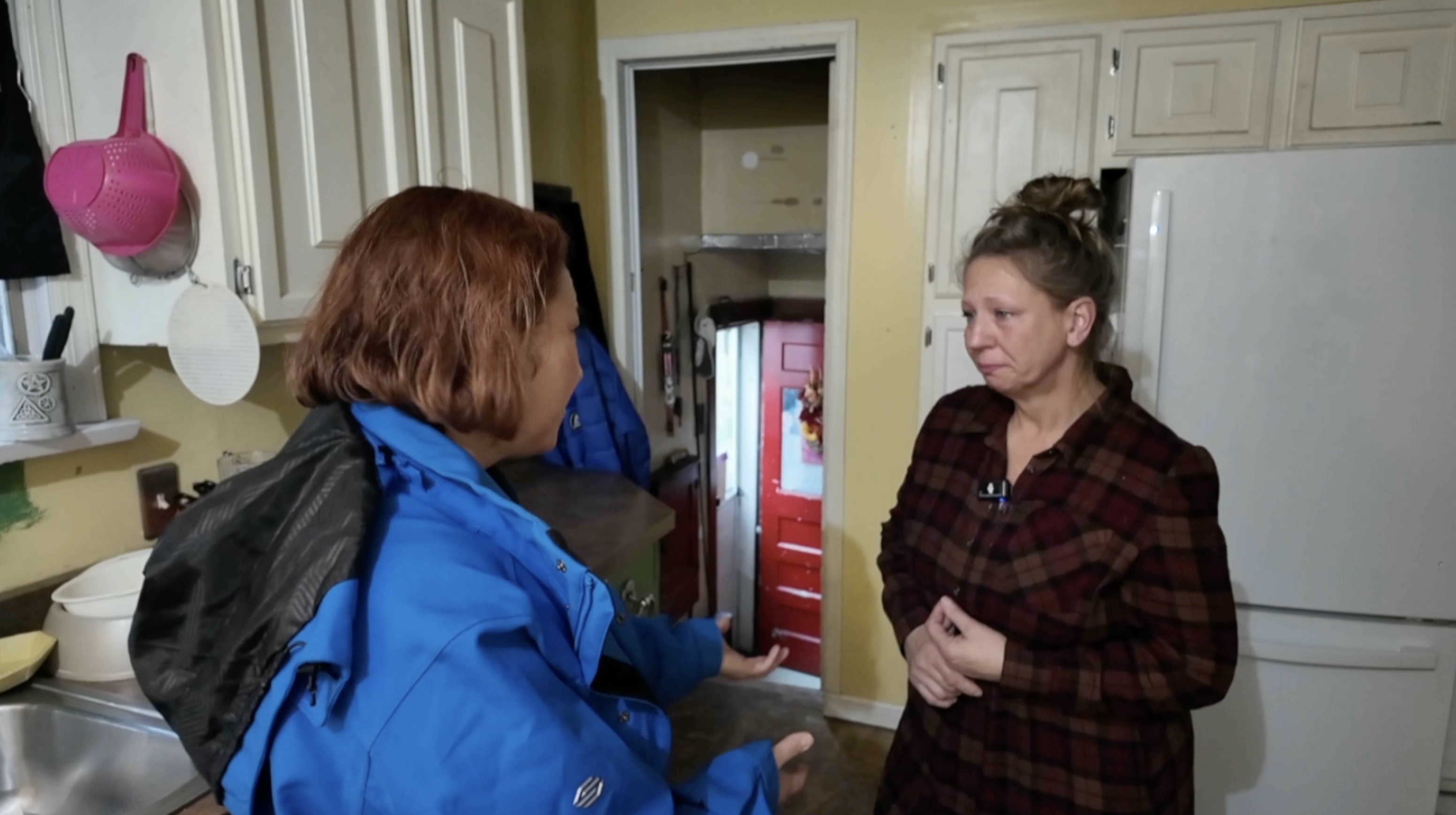 The pipes flooded the floor, causing it to buckle. Sasso and her son have been going to her father's or to the animal shelter she operates to use the bathroom and shower because her plumbing is unusable.