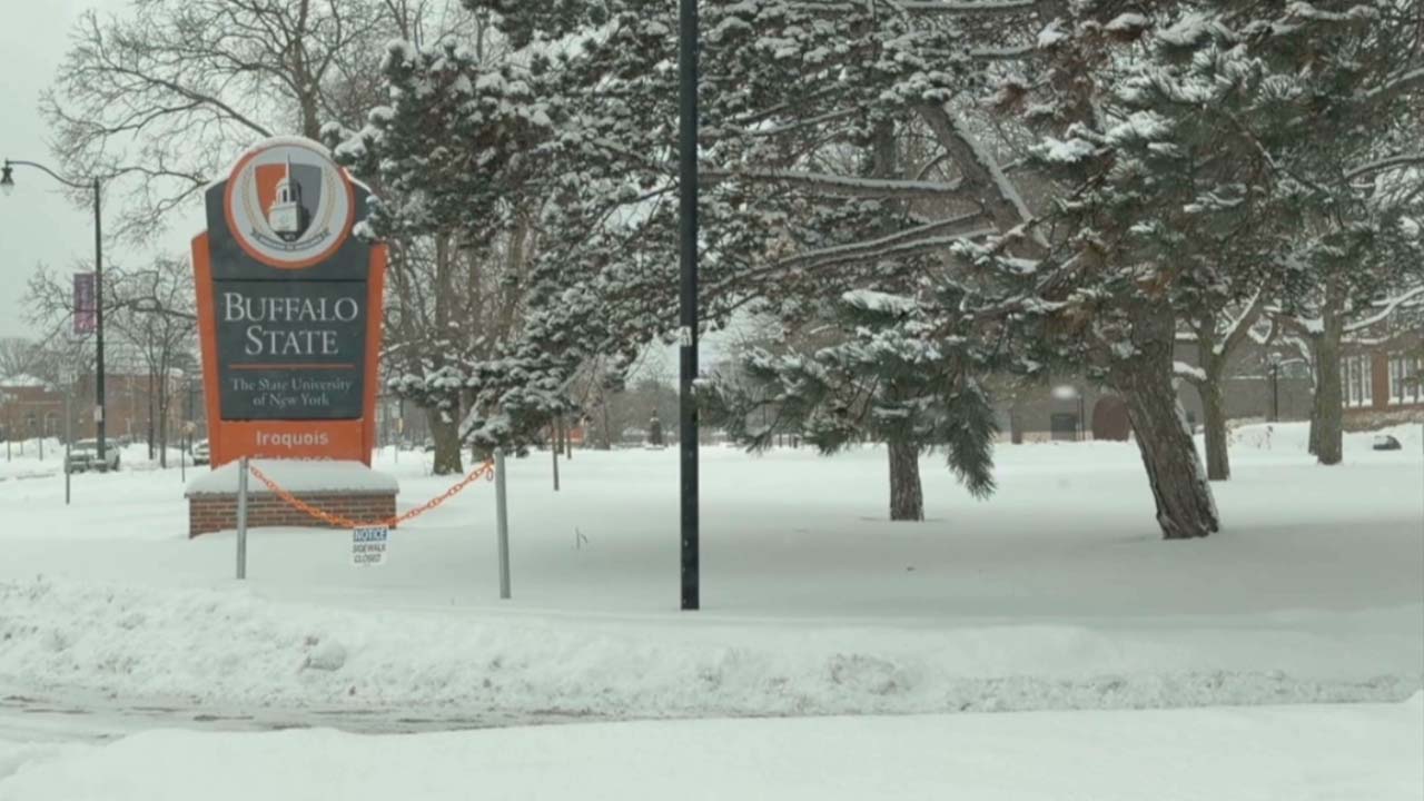 Then, on Thursday, Buffalo State canceled all classes and activities again. A school spokesperson said in a statement, "Snow removal and cleanup efforts continue in campus parking lots and sidewalks following additional snowfall and continued wind and drifting snow."