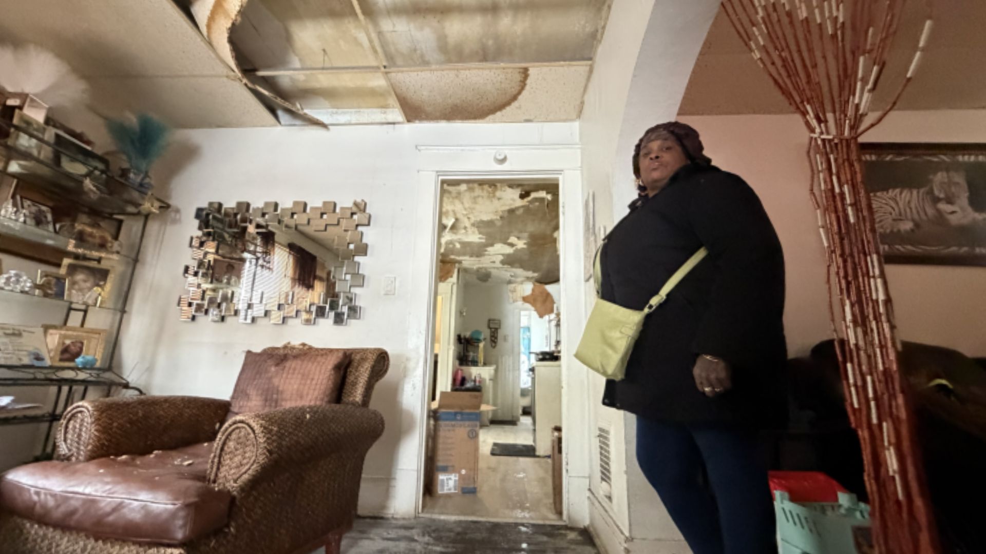 Munn says her ceiling has been leaking since summer, but her landlord didn't fix it. Her heat has also not worked for days.
