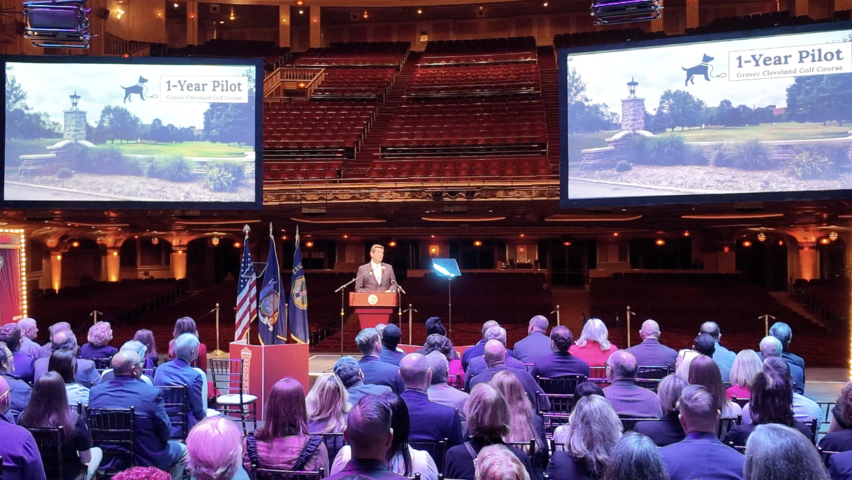 Among the upgrades, he is asking the legislature to approve using a $2 million budget surplus on "multi-unit" and a pilot program to allow dogs on leashes at Grover Cleveland Golf Course.