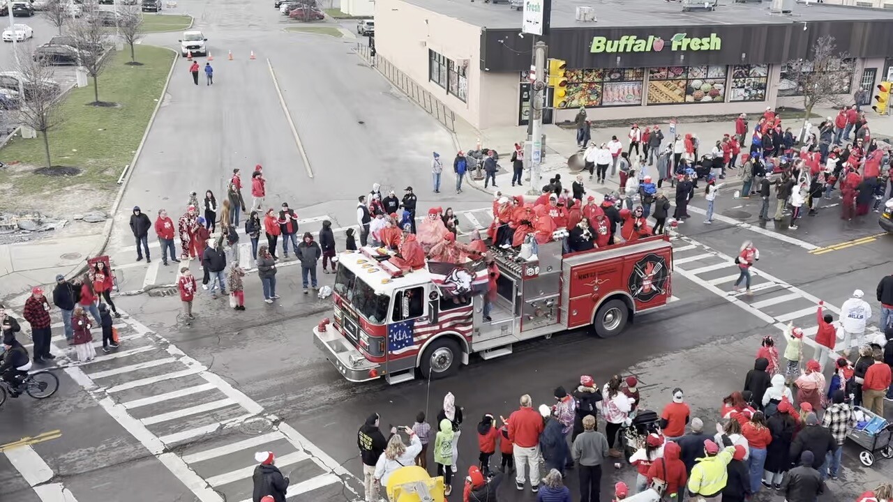 I caught up with Kathleen Forsyth and her friends ahead of the parade. They represented the Buffalo Ironworks float and have been attending the parade since they were 17, donning red and sparkles.