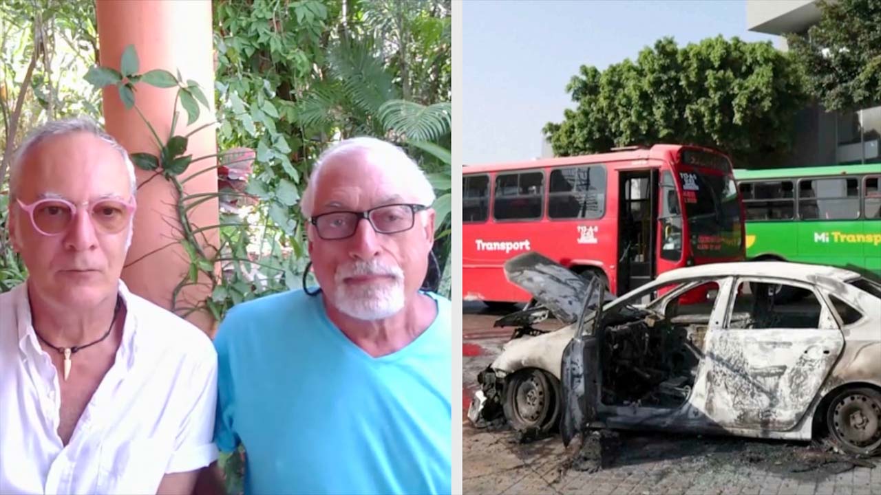Longtime Puerto Vallarta visitors Mark Nowak and Paul Morgan said they’ve always felt safe traveling to the area, until now. They described hearing gunfire, explosions, and watching fires break out across neighborhoods they know well.