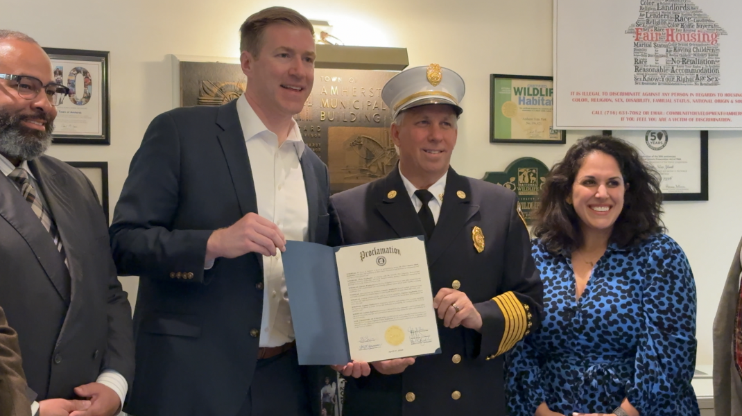 TOWN OF AMHERST, N.Y. (WKBW) — Getzville Fire Company Captain Chris Kaplewicz was recognized by the Town of Amherst Town Board for his bravery in the line of duty after saving two people from a burning home on Radcliffe Drive, last month.