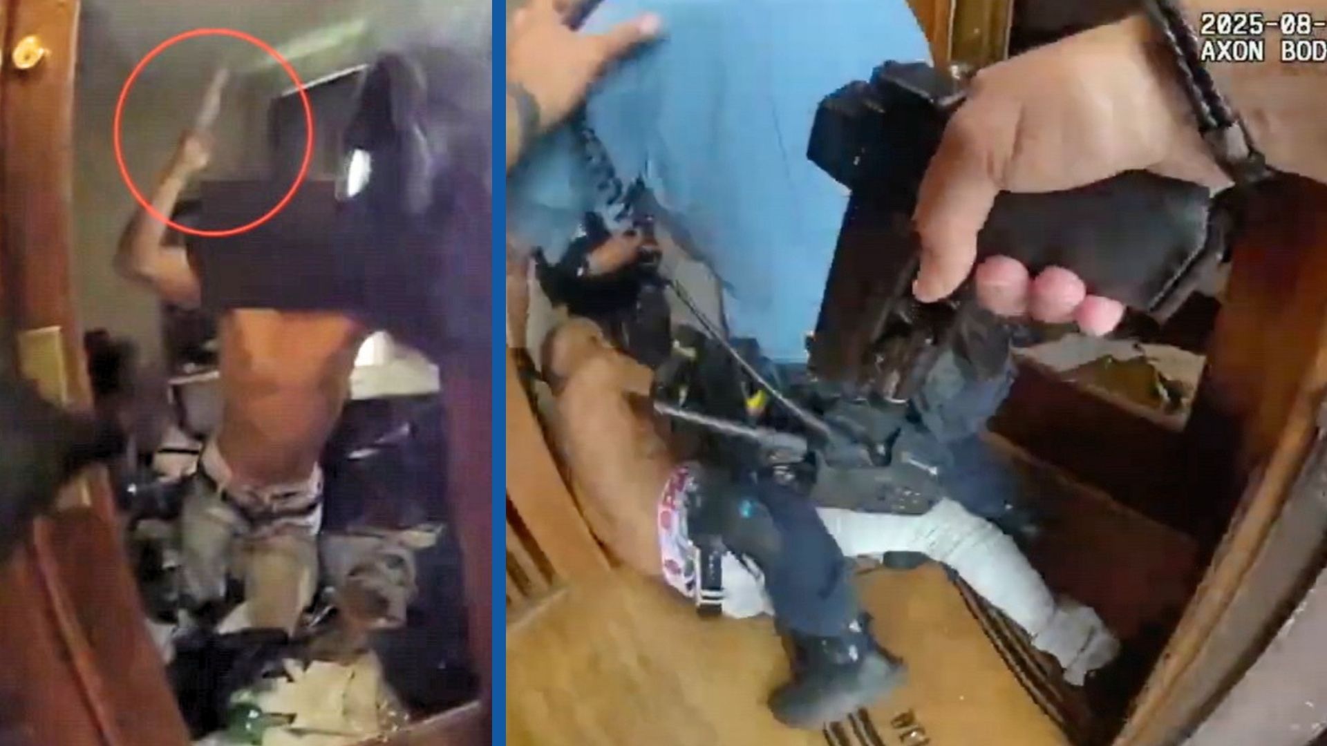According to the AG, officers announced themselves and knocked on the door and after repeated knocking, the door panel fell into the apartment. The AG said Davis lunged through the doorway with a knife and began swinging the knife at the officers. Davis then stumbled, rolled, and nearly swiped an officer as they repeatedly instructed him to drop the knife.