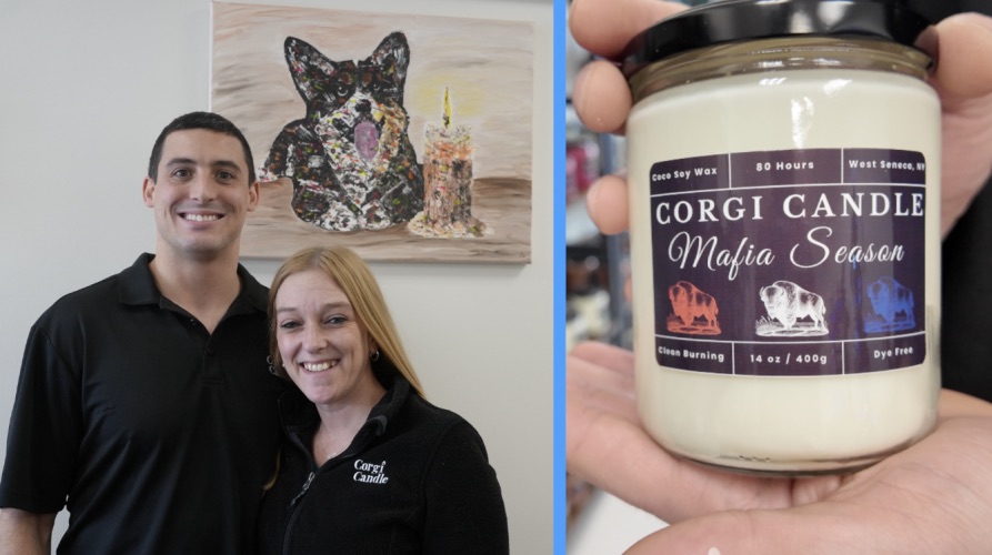 WATCH: 'All handmade': Couple opens eco-friendly, corgi-themed candle business in West Seneca