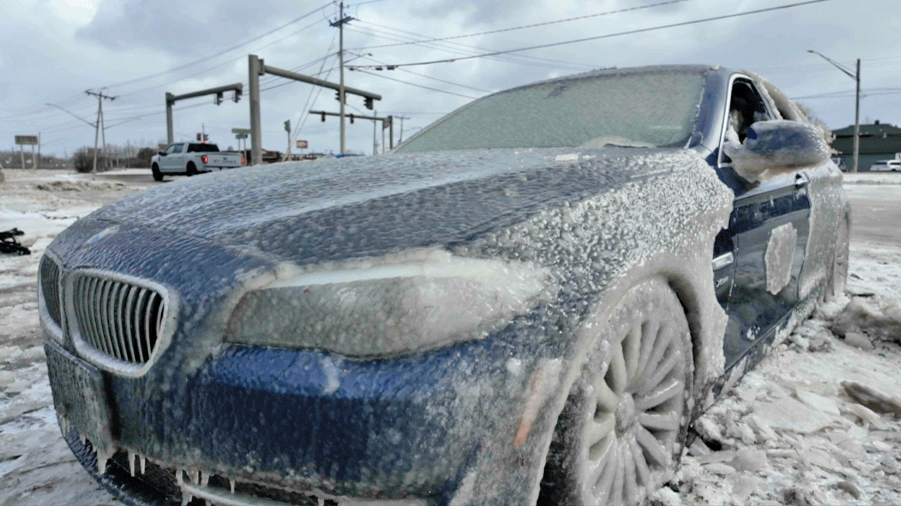 We went back out to Hoak's on Tuesday, and the BMW is still there, and the windows are still down. Both the car's interior and exterior are completely covered in ice.