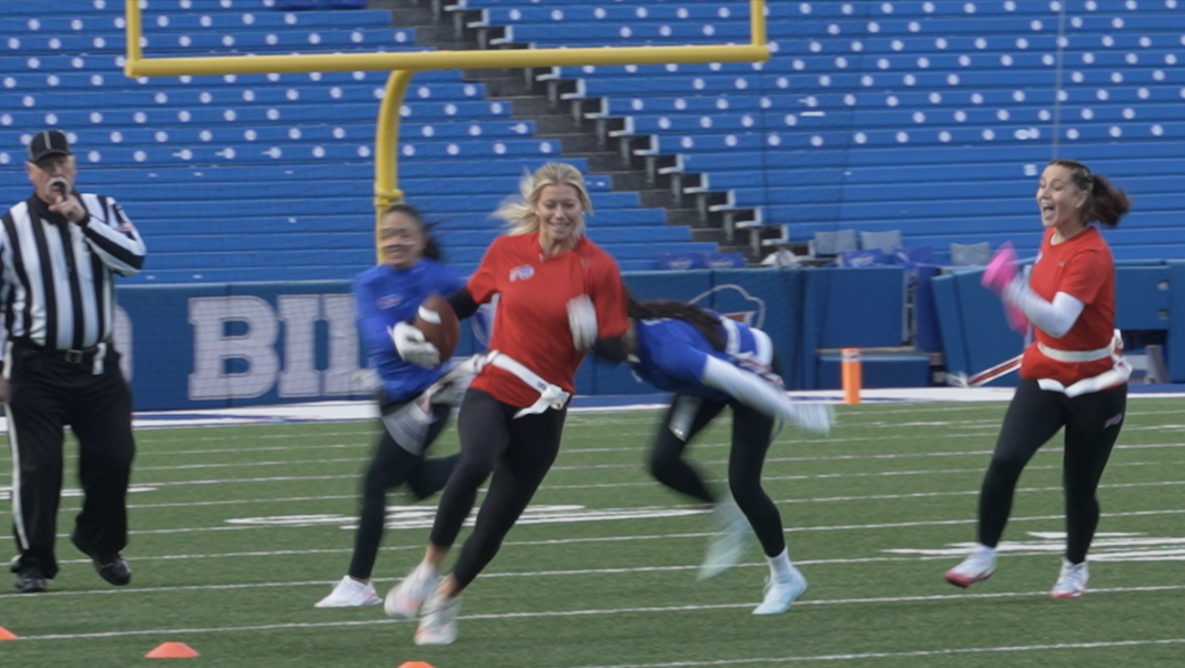 ORCHARD PARK, N.Y. (WKBW) — The wives and girlfriends of Buffalo Bills players traded their game-day outfits for jerseys and cleats on Tuesday night at Highmark Stadium for the annual charity flag football game, benefiting the Buffalo Bills Foundation's mission to tackle hunger.