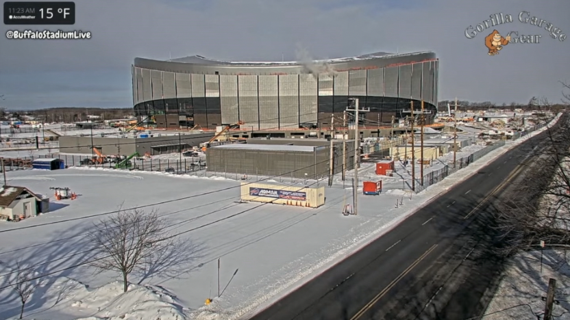 Video from the Buffalo Stadium Live Cam showed smoke rising from a portion of the stadium around 8 a.m. A spokesperson for Gilbane Building and Turner Construction said sparks from welding work sparked the small fire.