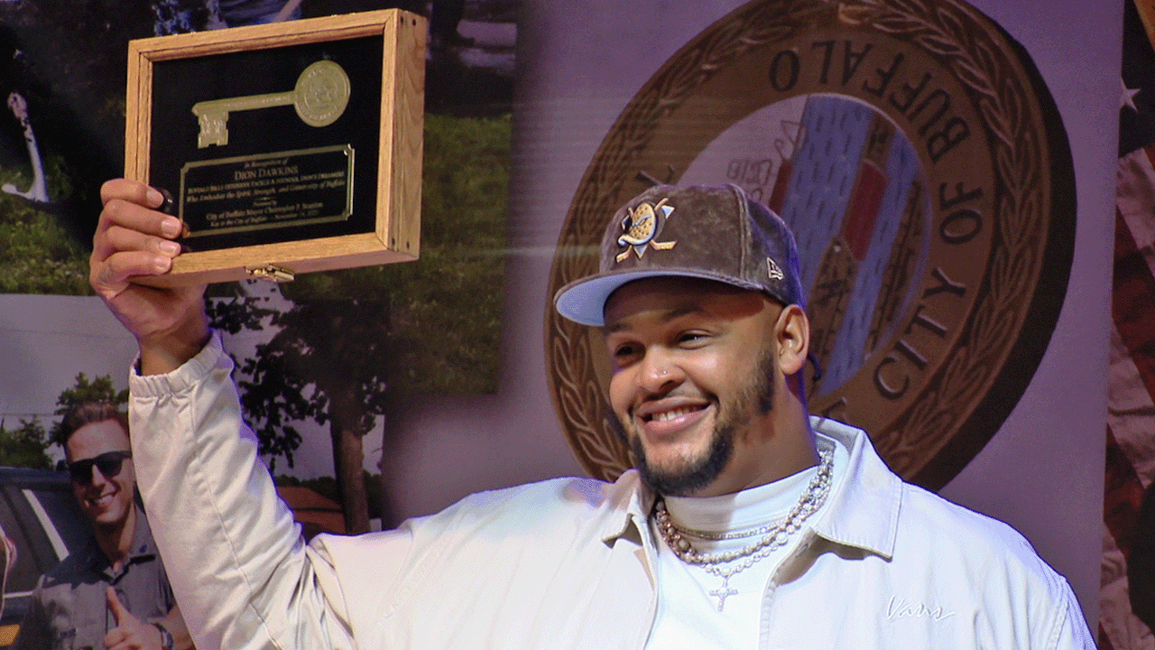 WATCH: Buffalo Bills OT Dion Dawkins receives the Key to the City of Buffalo