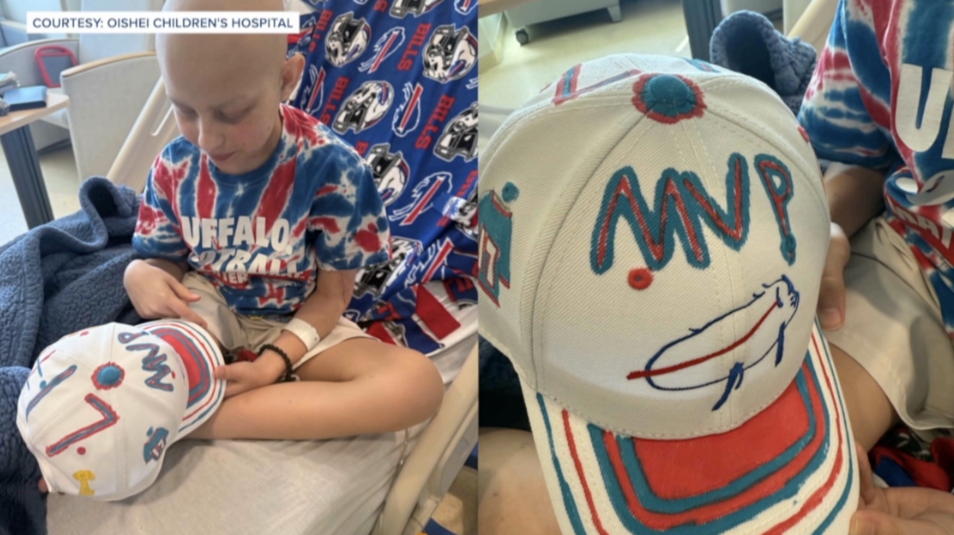 BUFFALO, N.Y. (WKBW) — Before each home game this season, Buffalo Bills Quarterback Josh Allen is wearing a New Era cap customized by a patient at Oishei Children's Hospital, and this week, 12-year-old Charlie Roessler is the designer.