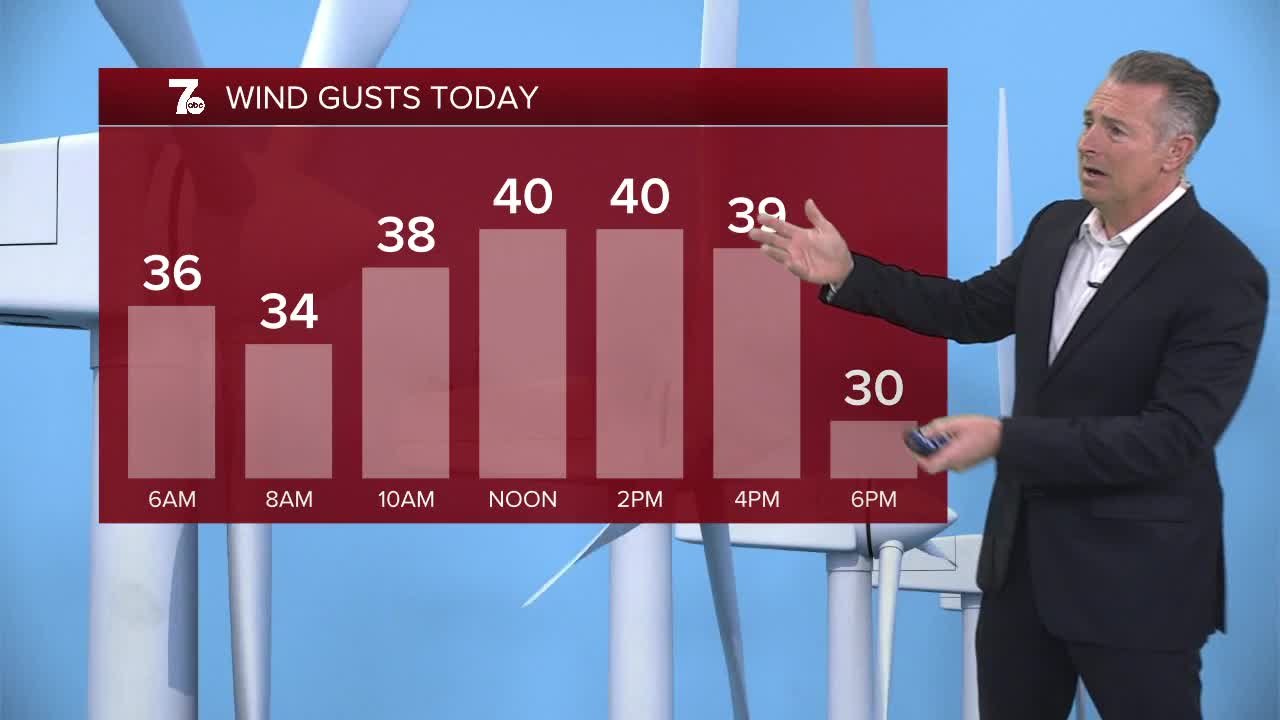 AFTERNOON: Breezy with snow showers, mid 30s.