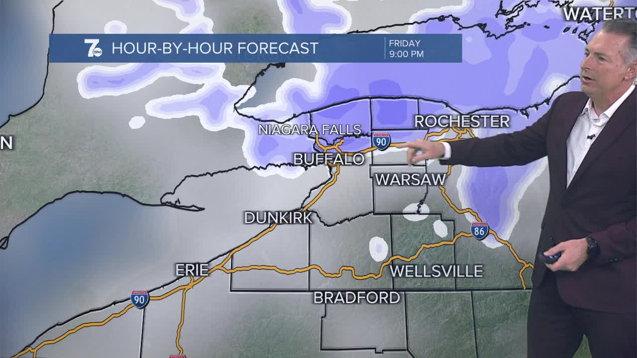 BUFFALO, N.Y. (WKBW) — Partly to mostly cloudy skies today with highs near 30. Winds will increase with gusts later today. A general light snow will arrive early this evening with a general 1" of accumulation.