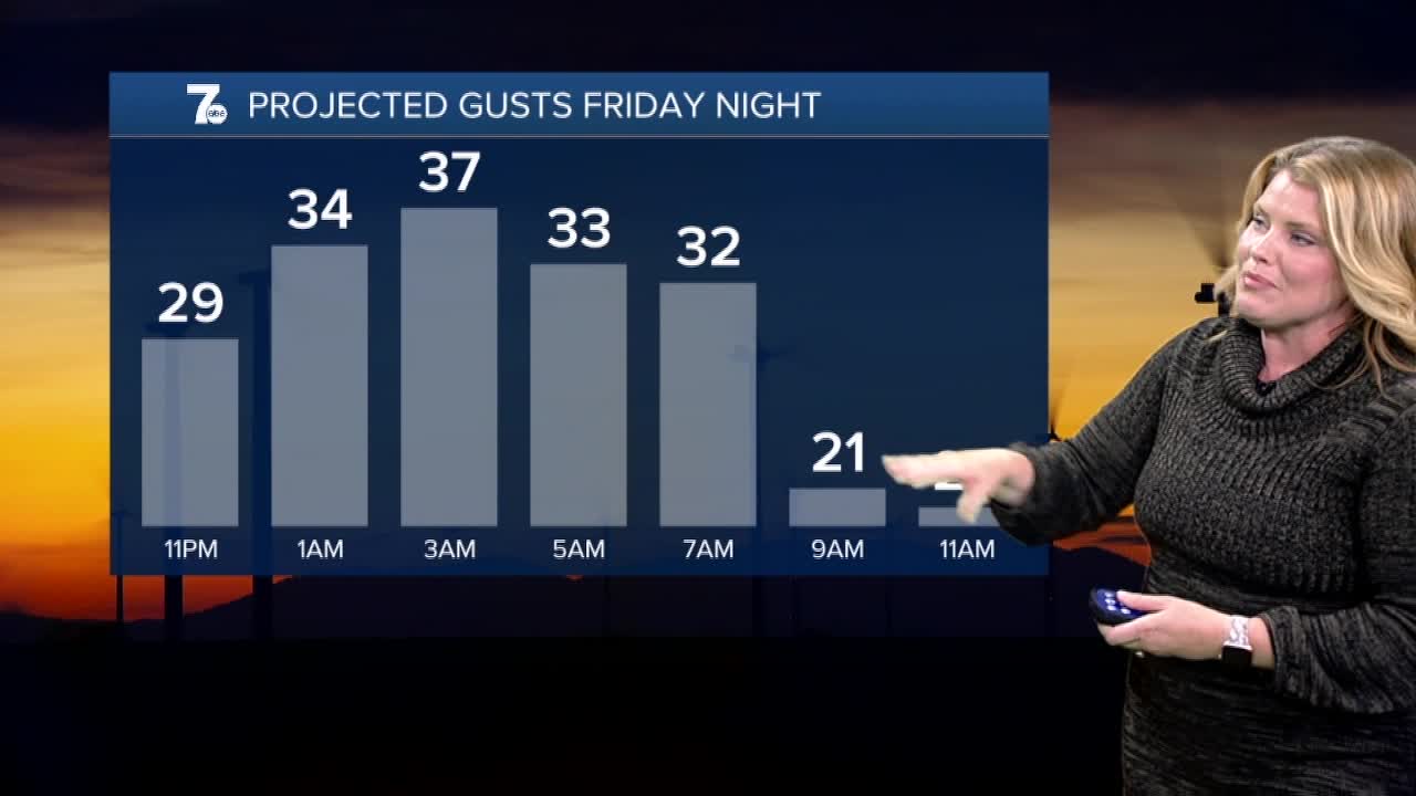 BUFFALO, N.Y. (WKBW) — Turning windy and staying mild tonight with increasing clouds and a chance of rain showers overnight toward dawn. Lows near 40. SW winds gusting over 40mph at times.