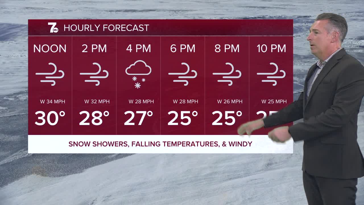 Temperatures will drop into the 20s later today, and winds will gust 40 to 60 miles per hour. Expect 1" of snow for Metro Buffalo, and 1 to 3" of snow for areas south of the city.