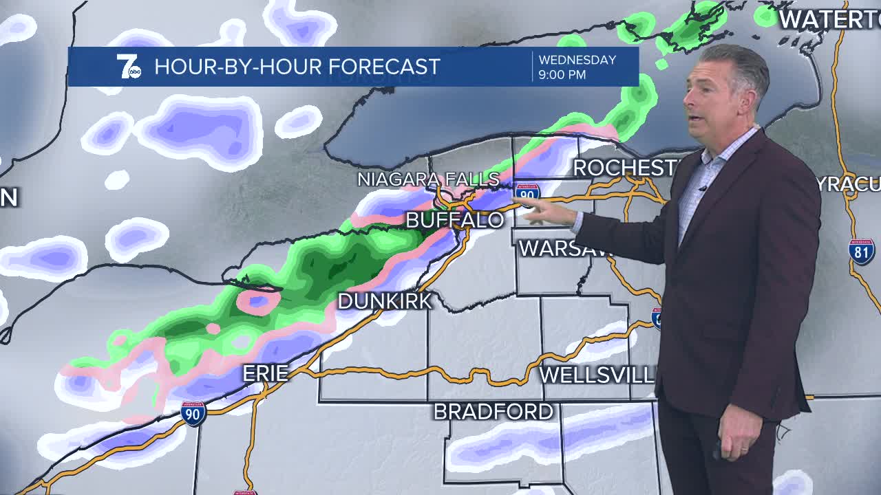 Winter Storm WATCH for Northern Erie and Genesee Counties from 7pm Wednesday through 4pm Thursday.