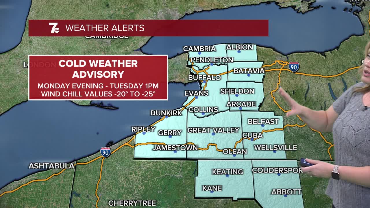 Cold Weather Advisory until 1pm Tuesday for all of Western New York. Wind-chills -10 to -25.