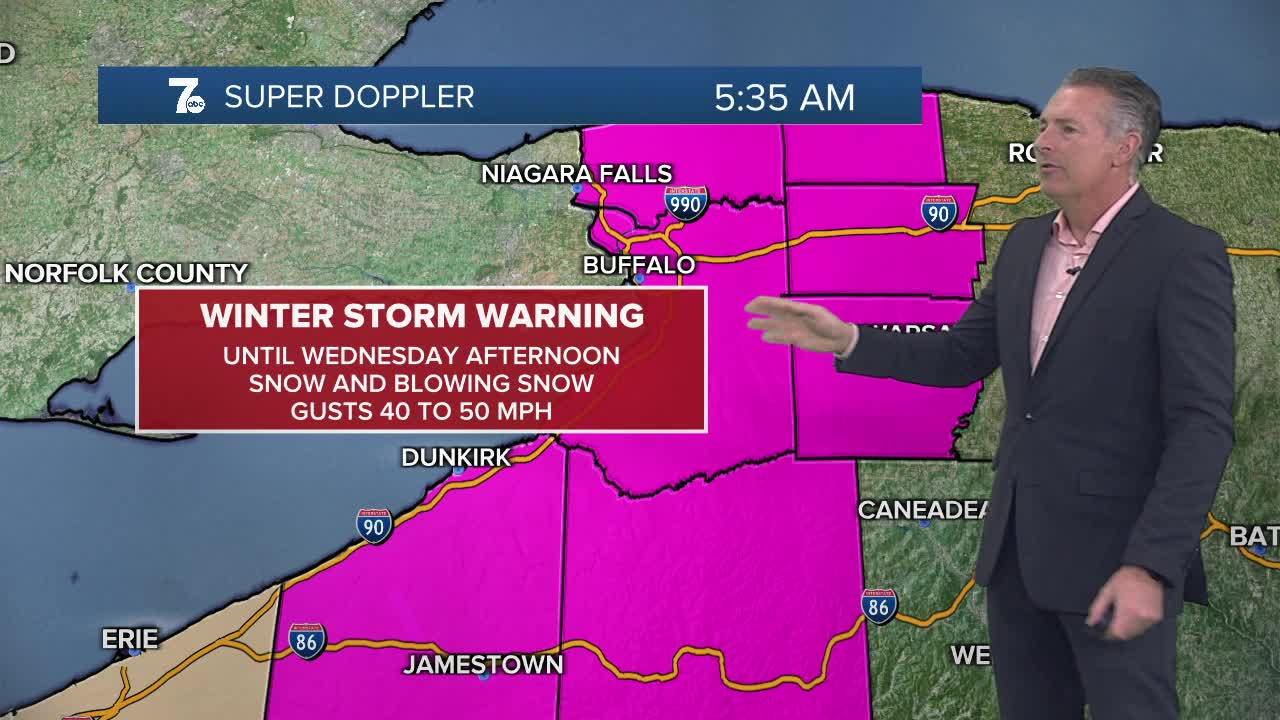 Winter Storm Warning through Wednesday afternoon for Erie, Niagara, Orleans, Genesee, Wyoming, Chautauqua, and Cattaraugus Counties.