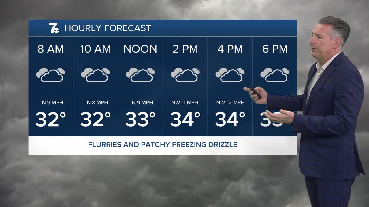 BUFFALO, N.Y. (WKBW) — Patchy freezing drizzle and a few flurries this morning. A weak system will move through the area this afternoon with snow showers likely.