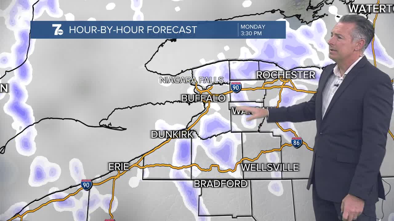 Snow showers will continue off and on today with a general snow of 1 inch. Lake enhanced snow will bring higher totals for area north and south of Buffalo. The lake effect will intensify tonight with the highest snow totals along the Chautauqua Ridge. The band will weaken Tuesday afternoon before strengthening again late Tuesday and moving toward Buffalo. The band could be over Buffalo for the Wednesday morning commute.