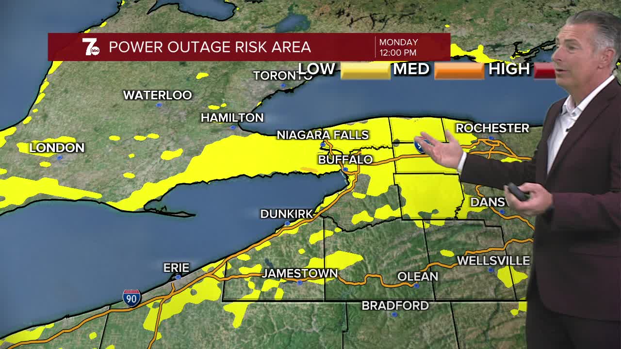 High Wind Warning until 1am Tuesday for Erie, Niagara, Orleans, Genesee, Wyoming, and Chautauqua Counties for winds gusting near 70 miles per hour. Power outages are possible today.