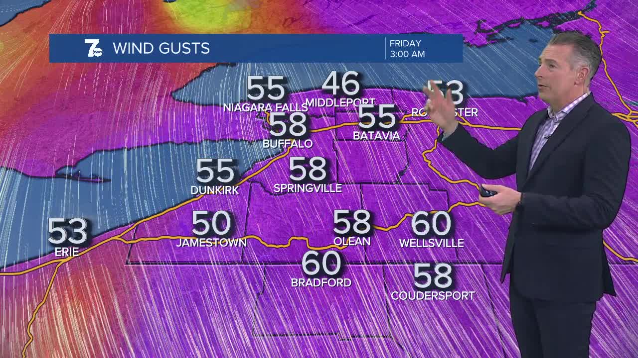 Wind Advisory from 3 p.m. today through 1 a.m. Saturday. for all of Western New York. Winds will gust near 50 miles per hour.