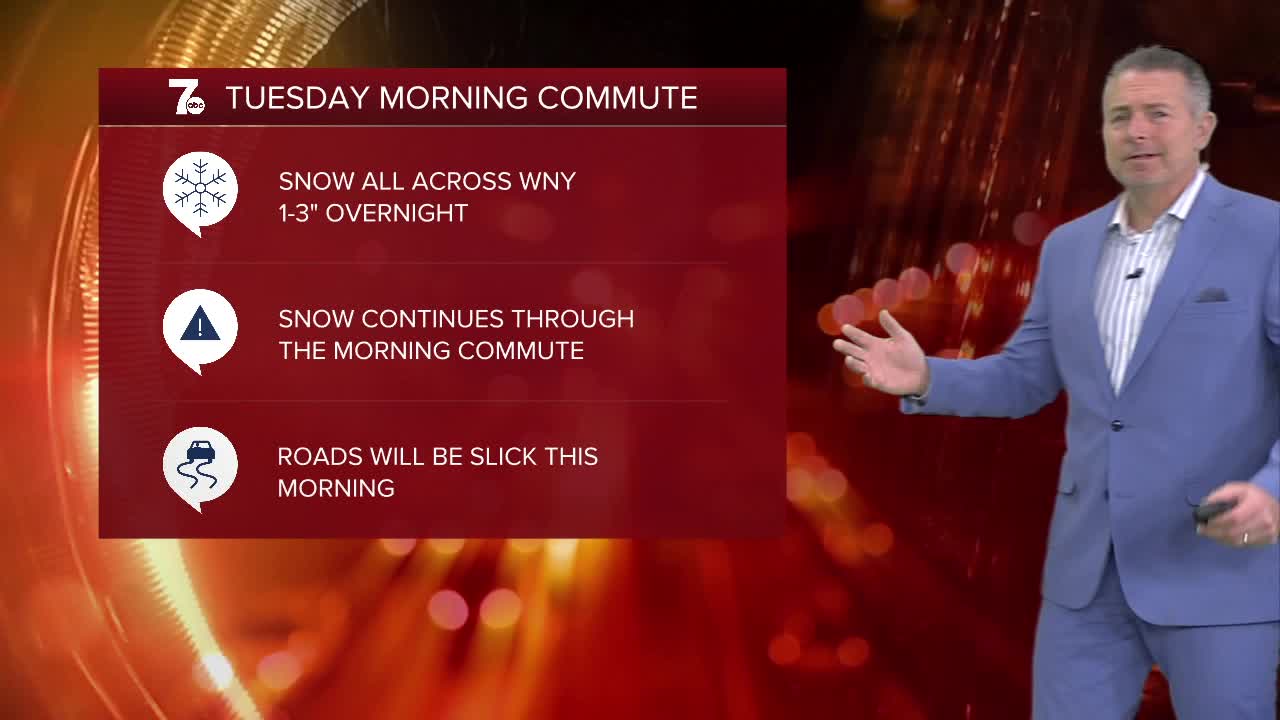 Winter Weather Advisory until 7 p.m. today for all of Western New York. Snow totals will be in the 2 to 5 inch range with the heaviest snow falling this morning.