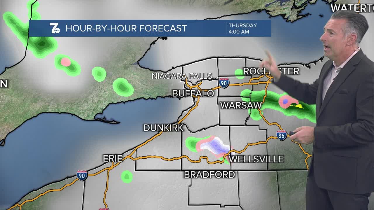 BUFFALO, N.Y. (WKBW) — Mostly sunny and breezy this afternoon with highs in the mid 50s. Clouds will increase tonight in front of the next system that will bring us rain on Wednesday. Winds will increase on Wednesday as well with winds gusting near 50 miles per hour. As cooler air arrives late Wednesday a few wet flakes may fly across the Southern Tier early Thursday morning.