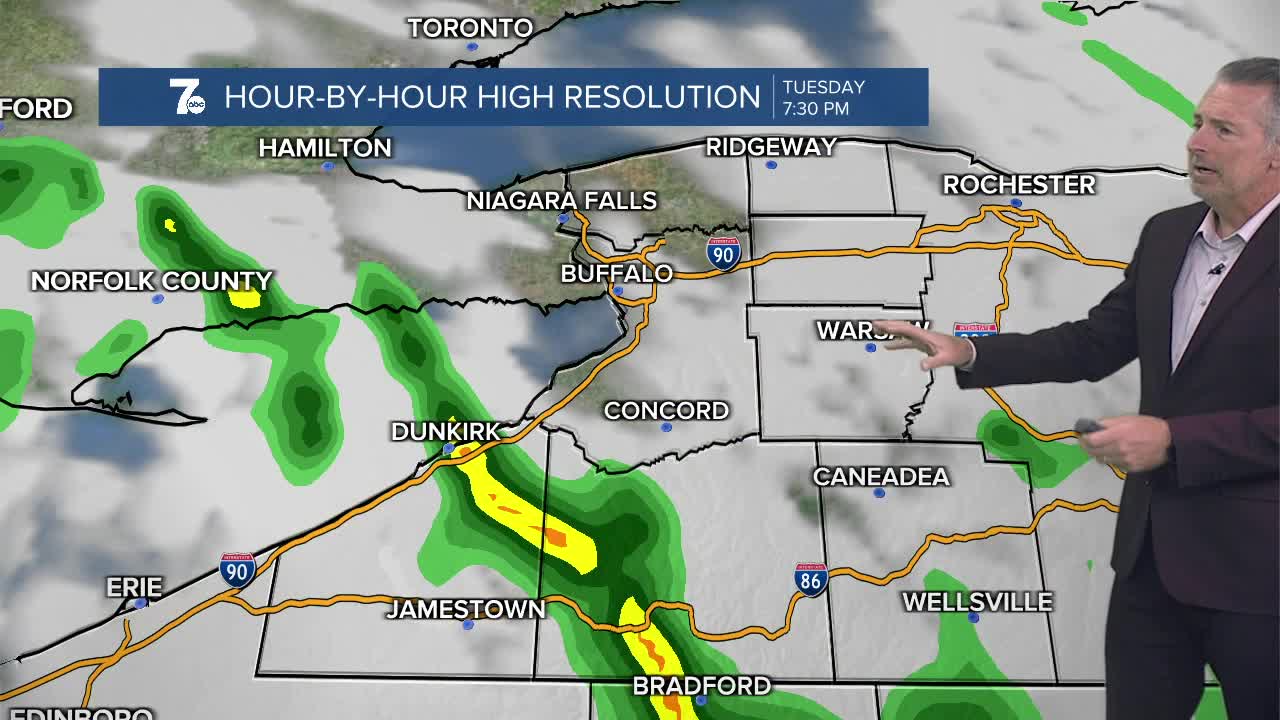 BUFFALO, N.Y. (WKBW) — Partly sunny and milder today with highs in the mid 50s this afternoon. A few showers will arrive this evening. Dry and milder weather will be with us Wednesday, Thursday, and Friday. Showers return on Saturday.