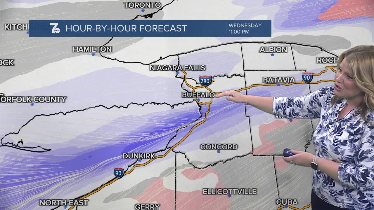 BUFFALO, N.Y. (WKBW) — Lake enhanced snow north of Buffalo early this evening. Drifting south to the southtowns near midnight and into the deeper southtowns and Boston hills overnight. Snow and blowing snow across the region overnight through early Thursday.