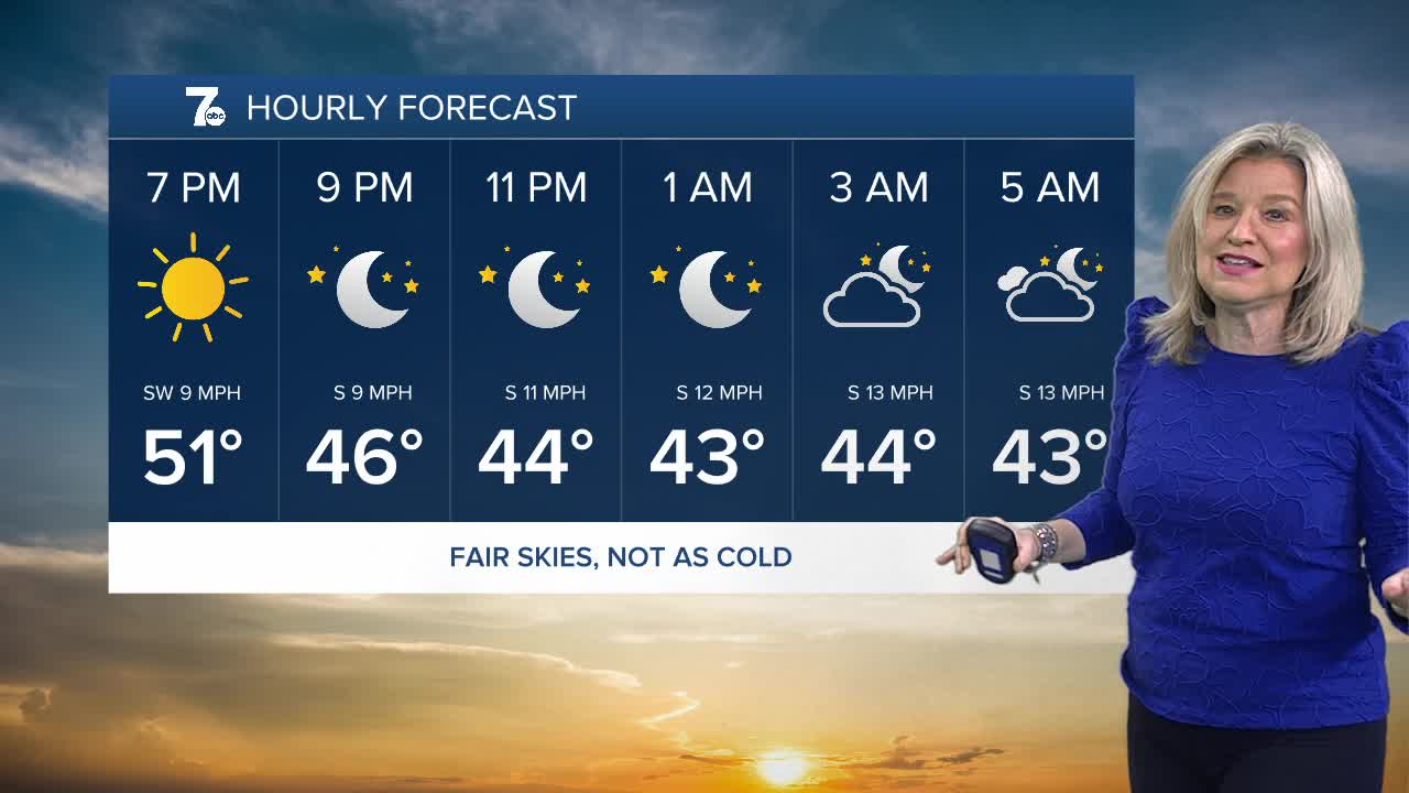 BUFFALO, N.Y. (WKBW) — Not as cold tonight with fair skies. Temperatures will drop to near 40F by morning. Turning breezy and warmer Thursday with a chance of spotty late afternoon and early evening showers and highs in the mid 60s. Not as warm on Friday with scattered showers around lunch time and highs near 50F. The weekend looks dry with partly sunny skies both days with highs in the low 50s Saturday and the mid 60s Sunday