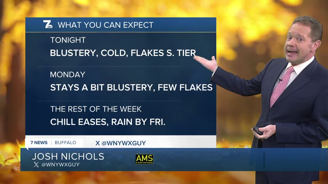 Otherwise the story into Monday morning is the cold and the wind for Buffalo. Nothing more than a few flurries will fly here. Temperatures Monday will struggle to get much past the upper 30s.