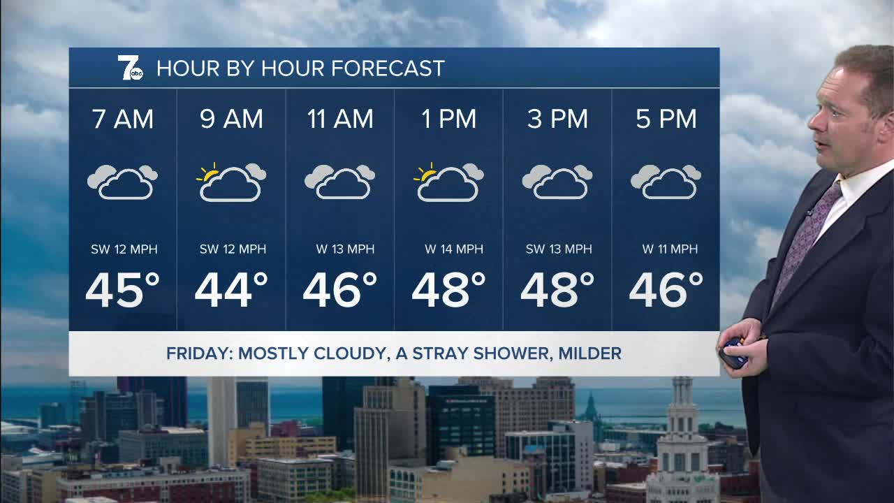 BUFFALO, N.Y. (WKBW) — Temperatures will toy with 50 degrees during the day today, thanks to milder southwesterly winds. Expect a wealth of cloud cover throughout the day, but nothing more than a widely scattered shower.