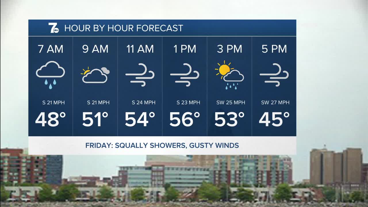 Clouds, winds, and temperatures will increase overnight. Expect waves of wetness to arrive Friday morning, along with some rather gusty winds. Gusts of 40 to 50 mph are possible. High temperatures wil be close to 60 in a few spots early in the afternoon! The time frame to watch for some of the stronger wind gusts will be midday and early afternoon. It won't be a rain soaked day, as the showers should end into the afternoon with dry conditions remaining until Saturday afternoon.