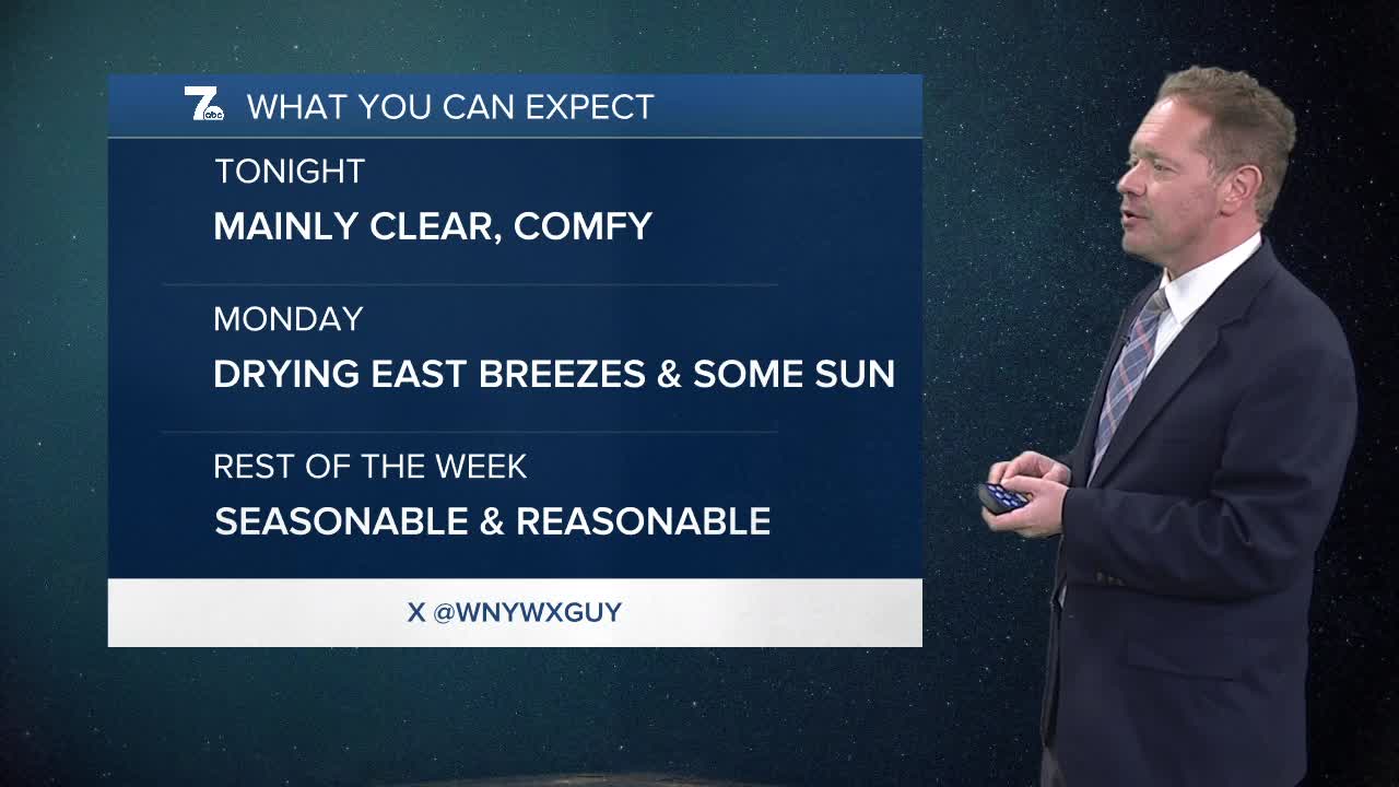 BUFFALO, N.Y. (WKBW) — Monday will end up being the driest day of the three day holiday weekend. We'll even see some sunny intervals with temperatures back into the 60s