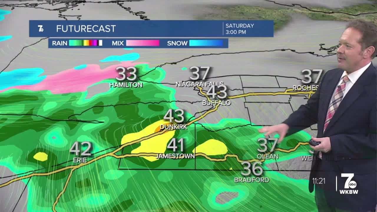 A dry start to your Saturday with rain returning in the afternoon. Rain changes to snow on Sunday with several inches of accumulation expected across the Southern Tier.