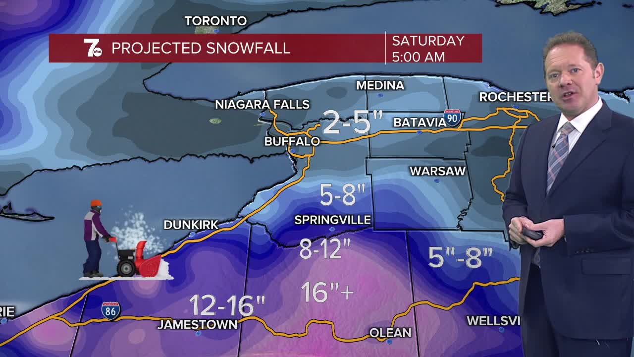 Lake Effect Snow Warning 1am Thursday through 1am Saturday for Southern Erie, Wyoming, Chautauqua, and Cattaraugus Counties. Winds will gust near 50 miles per hour and snow totals will be in the 10 to 20 inch range by Saturday morning.