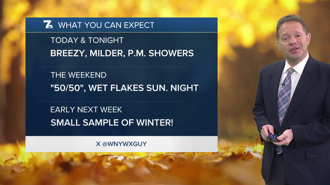 BUFFALO, N.Y. (WKBW) — An area of low pressure will bring another round of strong winds and rain to the area on Friday. Quiet weather on Saturday before another system brings rain and snow to the area on Sunday.